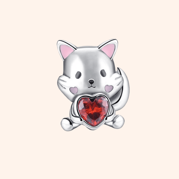 Charm Gato Piedra Roja S925