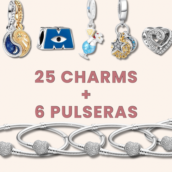 Paquete 25 Charms Plata S925 + 6 Pulseras Plata S925