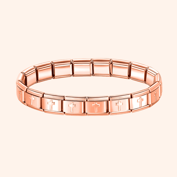 Pulsera Italiana Cruz Rose Gold Acero Inoxidable